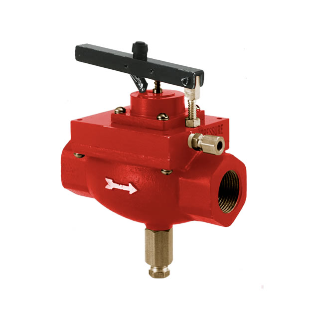 M2582-P 适用于 1 英寸(25 毫米)燃气管线。它在 5 psi (35kPa) [0.34 bar] 时自动打开,并在 15 psi (103 kPa) [1.02 bar] 时完全打开阀座。可以在入口压力为 80 psi (552 kPa) [5.52 bar] 的情况下,使用杠杆和闩锁手动打开阀门。先导压力达到 11 psi (17kPa) [.17 bar] 后,闩锁将释放。